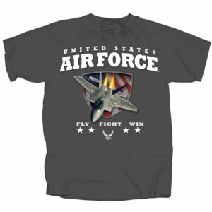 Showcasing the iconic Air Force logo alongside aggressive “rush-style” design elements, this shirt captures the intensity and momentum of airpower in action. The “Fly Fight Win” message reinforces the core mission and mindset of the U.S. Air Force—making this tee both a statement of pride and a symbol of excellence.