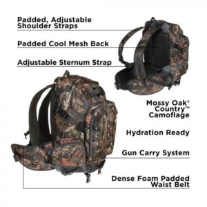 Capacity: Large main compartment for gear and game-haul with a smaller zippered daypack for essentials.