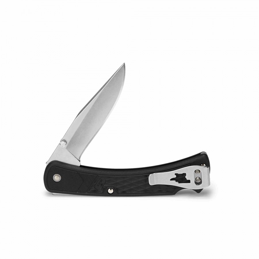 This folding knife measures approximately 8.63″ open and closes down to about 4.88″, and weighs around 2.8 oz. The blade is crafted from 420HC stainless steel for good edge retention and corrosion resistance, with Buck’s Advanced Edge2X treatment. The handle is made of GFN with a reversible tip-up pocket clip, enabling right or left carry as preferred. The lock-back design ensures the blade stays securely open during use.