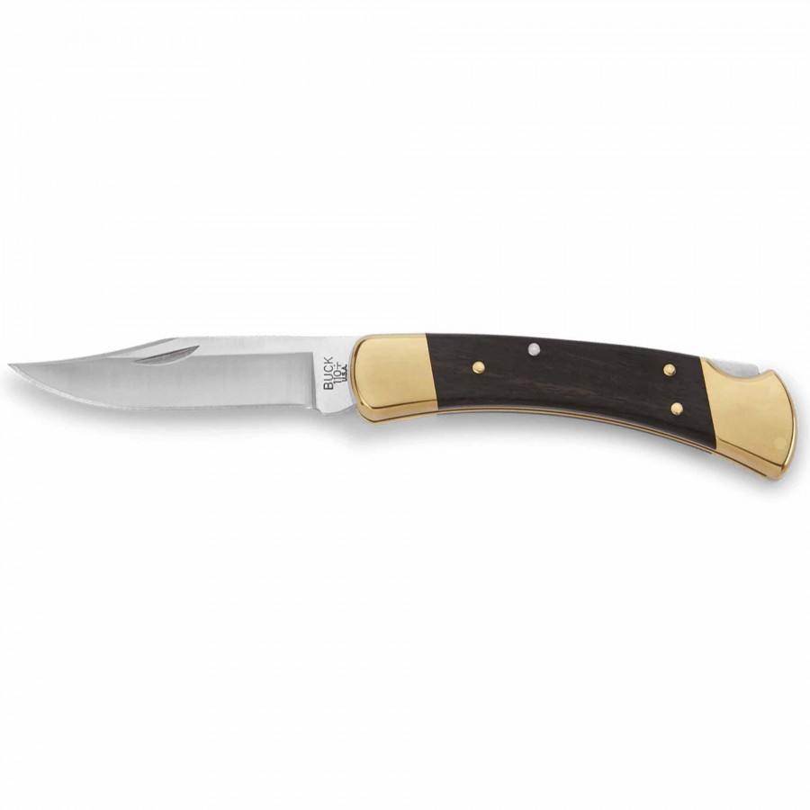 A heritage lock-back folder designed for controlled slicing and durable field use. The 110’s clip-point blade handles game processing and camp chores with ease, while the solid brass frame and contoured wood scales provide a secure, comfortable grip. The lock-back mechanism offers rock-solid blade security during use, and the included leather sheath keeps the knife protected and at hand. Made in the USA with Buck’s renowned heat treat for balanced edge retention, toughness, and easy sharpening.