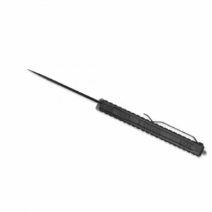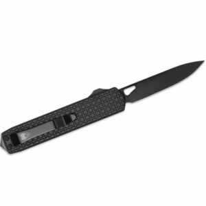 This premium automatic OTF knife combines a black-titanium coated D2 steel blade with a textured 6061-T6 aluminum handle and black hardware for a stealthy “clip-to-blade” finish. CNC machining ensures fit and operation are smooth and reliable. Backed by a lifetime warranty.