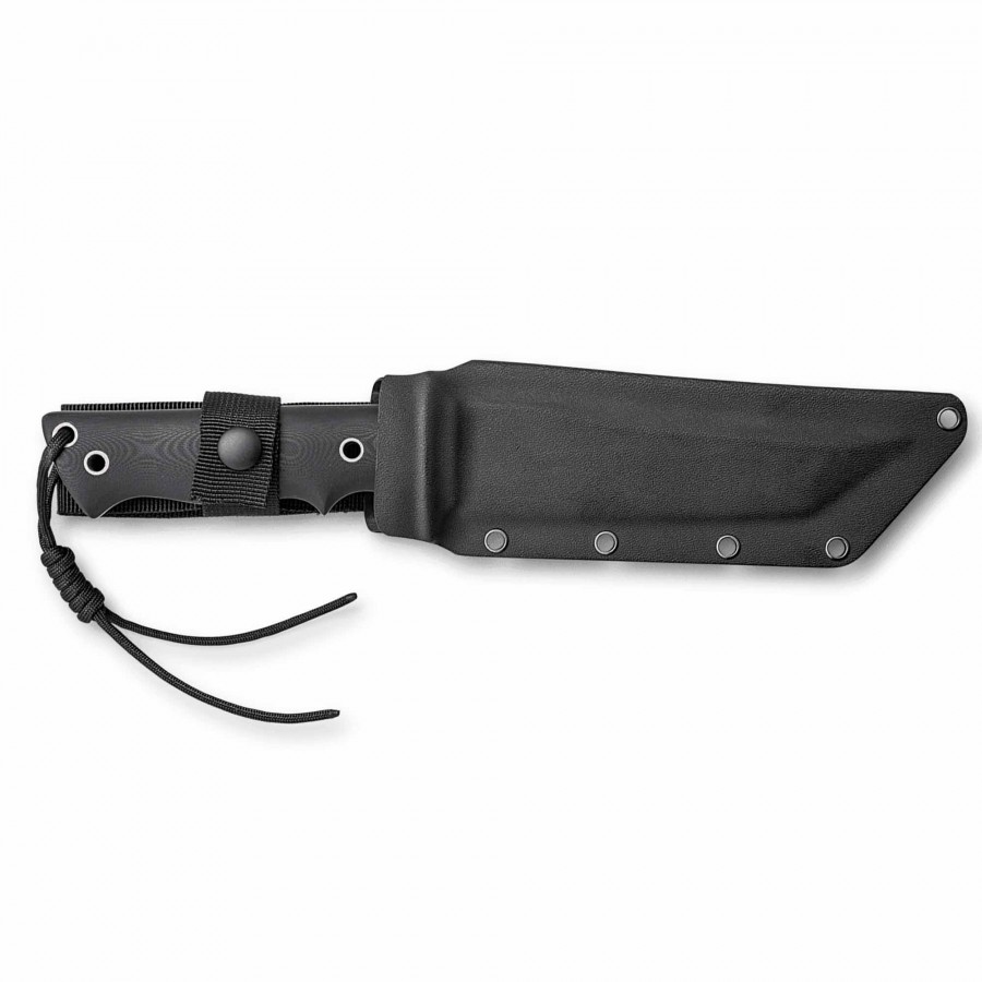 This fixed-blade from the model line includes a 6″ satin finish 440C stainless steel blade, full tang construction, G10 handle scales, and comes with a Kydex belt sheath.