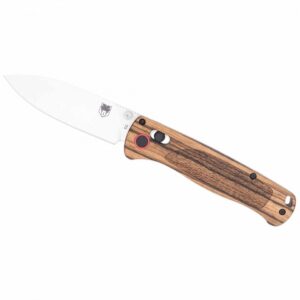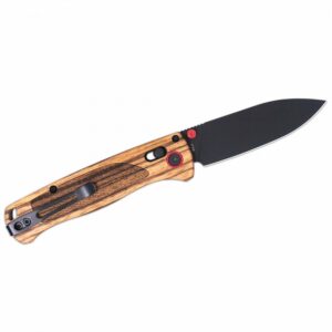 This elegant yet capable folder features a 3.00″ D2 steel drop-point blade and beautiful zebrawood handle scales over an aluminum body, built for dependable everyday carry with standout aesthetics. With an overall length of approx. 7.50″ and a feather-light weight of 3.1 oz, it blends performance and craftsmanship for daily tasks or as a refined carry piece.