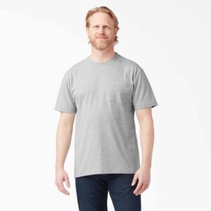 The Dickies Short-Sleeve Heavyweight Pocket T-Shirt is a rugged, everyday tee built from a heavier-weight knit to stand up to hard work while remaining comfortable all day. With a reinforced chest pocket, taped shoulder seams, and a roomy but tidy cut, this shirt functions as a dependable work layer or durable casual tee that washes well and keeps its shape.