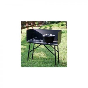 With its adjustable steel windscreen and durable all-steel construction, the table offers superior stability and protection from the elements, making campfire and backyard cooking easier and more efficient.