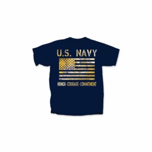 Show your support for the United States Navy with the Navy “Honor Courage Commitment” Tonal Flag T-Shirt—a sleek, modern design that reflects the core values of the Navy with understated strength and style.