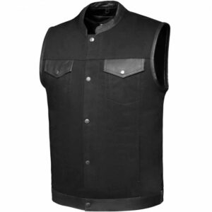 The Nightrider Men’s Denim Leather Club Vest combines the toughness of leather with the comfort of denim in a bold, road-ready design. Featuring a rugged denim body reinforced with premium leather trim and shoulders, this hybrid vest delivers standout style with everyday practicality. Its one-panel back provides a clean canvas for club patches or custom embroidery, while four exterior pockets and two inside concealed carry compartments ensure you’ve got secure storage on every ride. Built tough with reinforced seams and heavy-duty hardware, the Nightrider Vest is as functional as it is stylish.