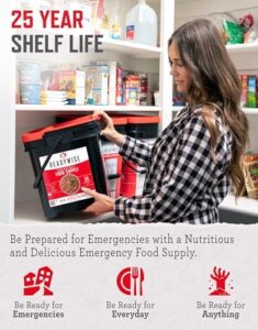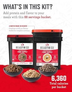 Be prepared to nourish your crew with the ReadyWise Meat & Rice Survival Bucket. This rugged emergency food kit provides 88 servings—including meat and rice pouches built to last up to 25 years. Designed for survival, camping, or long-term storage, it's quick-prep nourishment you can depend on.
