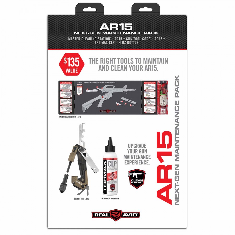 Upgrade your AR15 maintenance experience with the AR15 Next-Gen Maintenance Pack. This pack includes the Master Cleaning Station – AR15, Gun Tool Core – AR15 and Tri-Max CLP – 4 oz Bottle. The Master Cleaning Station features an integrated cleaning kit, oil-resistant surface and ample size for disassembled guns. The Gun Tool Core – AR15 is the ultimate solution for maintaining your AR15 in optimal condition. The Tri-Max CLP is a chemically-advanced triple threat to the most common enemies of gun performance – friction, corrosion & gunk. Keep your AR15 in optimal condition with this comprehensive maintenance pack.