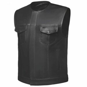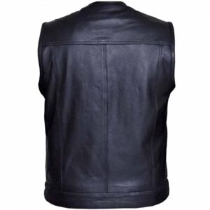 Design: Collarless SOA-style club vest with a sleek, minimal profile