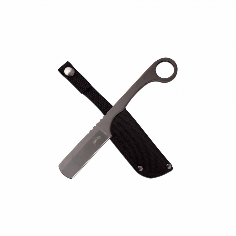 The Stainless Fixed-Blade Razor is a compact, no-nonsense fixed-blade knife built for precise cutting tasks where a thin, razor-sharp edge is required. Machined from corrosion-resistant stainless steel with a slim profile and comfortable handle, it’s made to perform clean cuts for everyday utility, box opening, field chores, and quick-access tasks. A low-profile nylon sheath is included for safe carry on a belt or neck cord.