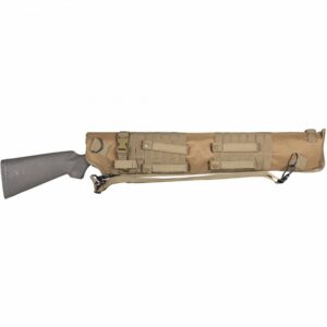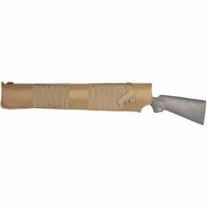 Crafted from heavy-duty tactical polyester, the scabbard features MOLLE-compatible webbing for attaching additional pouches or gear. Adjustable straps allow for versatile carry options—whether mounted on a pack, slung across the back, or secured to a vehicle. A quick-release retention strap keeps the shotgun secure but accessible when seconds count.