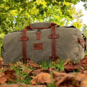 Constructed from heavy-duty canvas, the Weekender Duffel is made to withstand travel, outdoor use, and everyday wear. The large main compartment provides generous storage capacity, making it easy to pack for trips, gym sessions, or extended range outings.